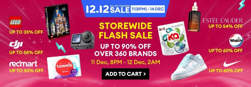 Similar to Shopee, Lazada is hosting a mega 12.12 sale. From home goods to little knick-knacks, you’ll find a discount for every item. Find items as low as S$1, with discounts of 80% off selected items.