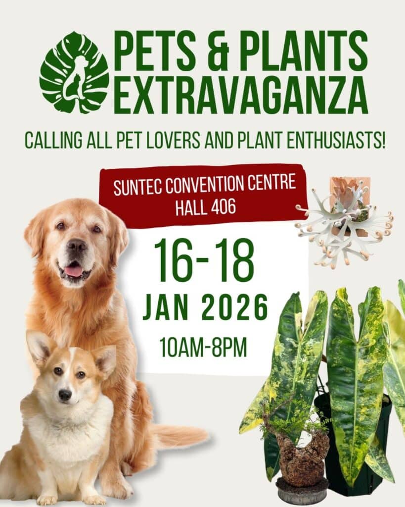 Haven’t had enough of Singapore Cat Festival? Don’t worry, as an upcoming pets event is happening in January—known as the Pets & Plants Extravaganza, the event will take place from 16 January 2026 to 18 January 2026, from 10am to 8pm.