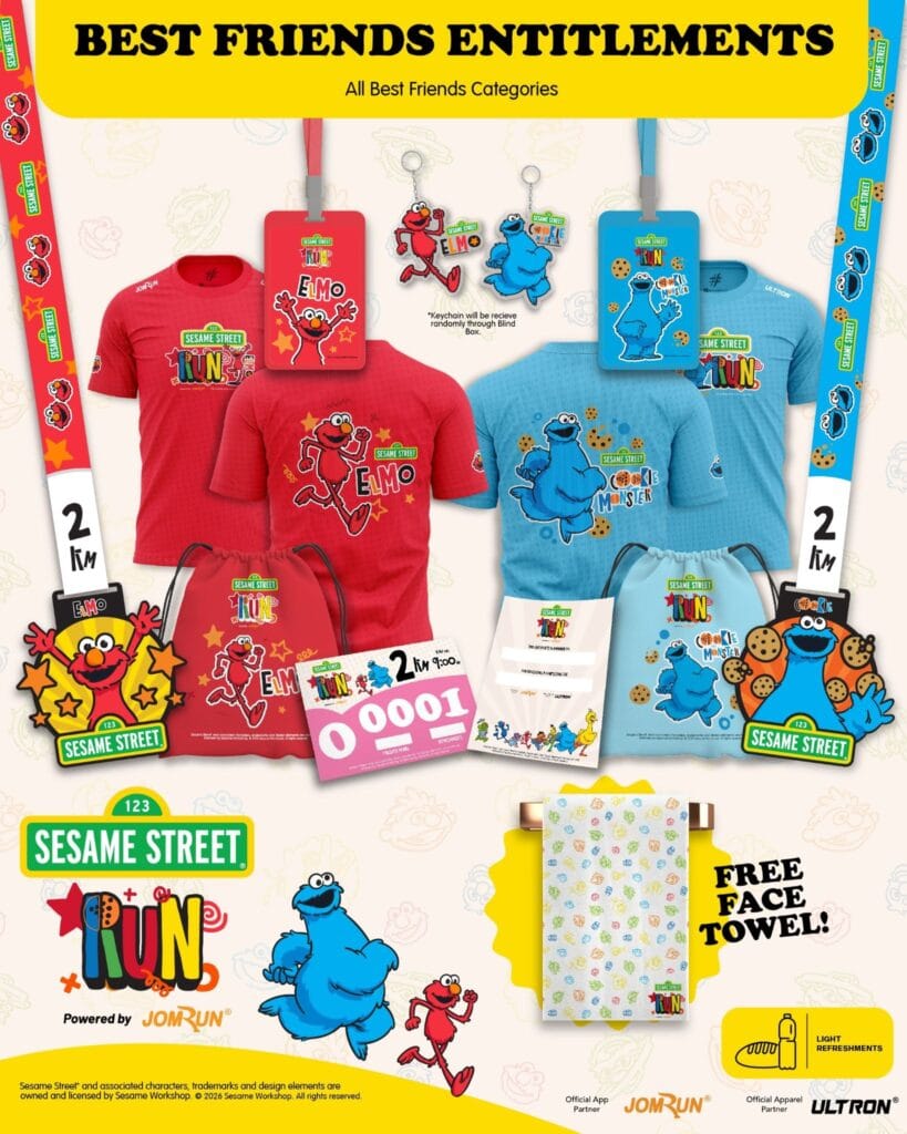 Similar to the Sesame Street Run, there will also be three run categories to choose from—3km, 5km, or 10km. Each category will be given its own tailored freebies package, including free jerseys, medals, foldable fans, race bibs, and more.