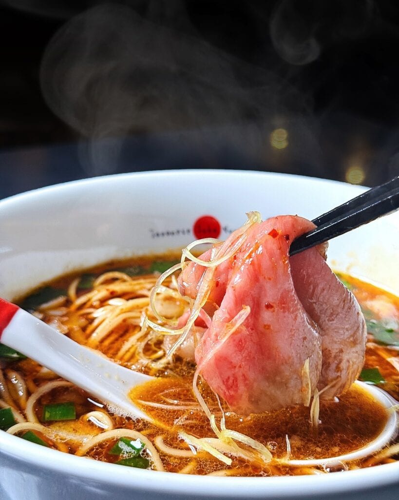 When you get the chance to visit Menya Musashi, you’ll definitely have to order their Tonkatsu or Tsukemen variations—both feature tender, slow-cooked pork belly in a thick, flavourful broth.