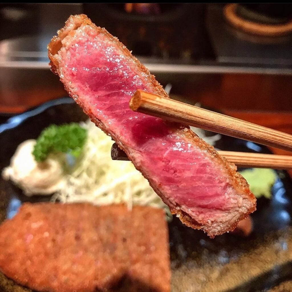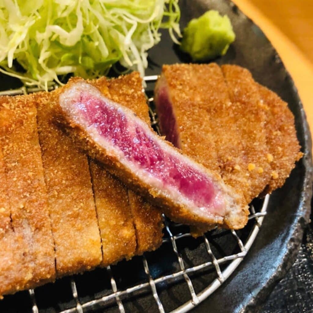 Asakusa Gyukatsu is another popular spot within the Asakusa area. Similarly, it offers medium-rare breaded beef cutlets, and you can also grill them at your table to your preferred doneness.