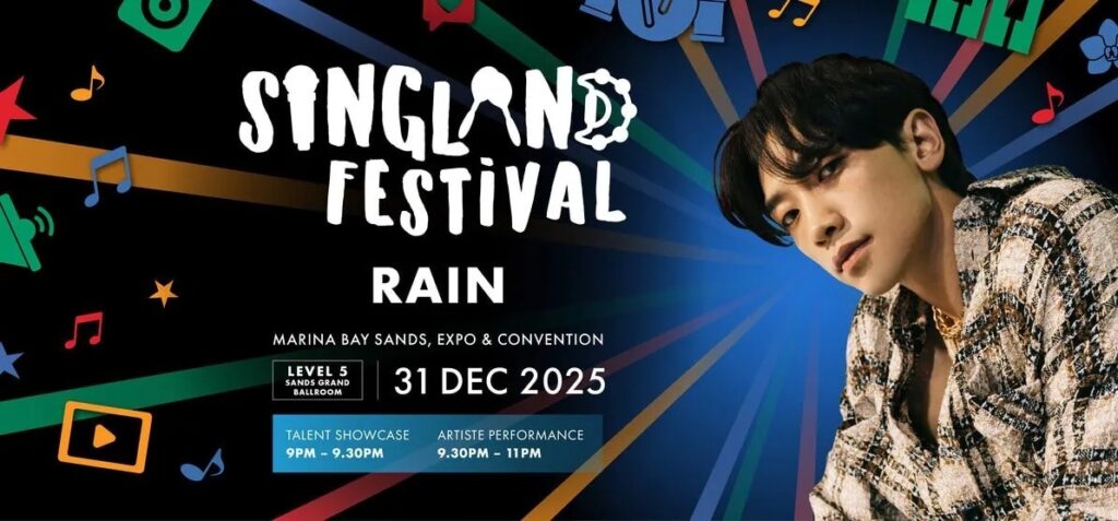 The three-day SINGLAND Festival will kick off on 31 December 2025 with Korean artist Rain. Then, it will resume from 2 January 2026 to 3 January 2026 with Terry Lin, Henry Lau, and Ne-Yo on stage.