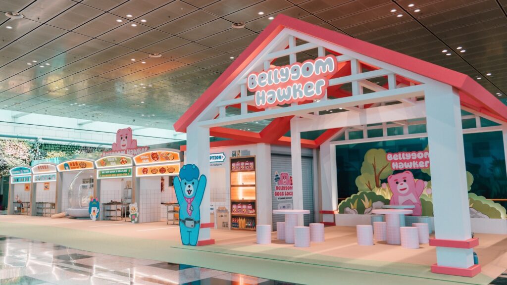 At the centre of their arrival, you won’t miss Bellygom’s seven-metre-tall inflatable, set among the Peranakan shophouses at Terminal 3’s Departure Hall. Zooming out of the centrepiece inflatable, you’ll also spot Bellygom and his friends at Singapore-inspired photo spots, carnival games, and themed pop‑up stores around Terminal 3.