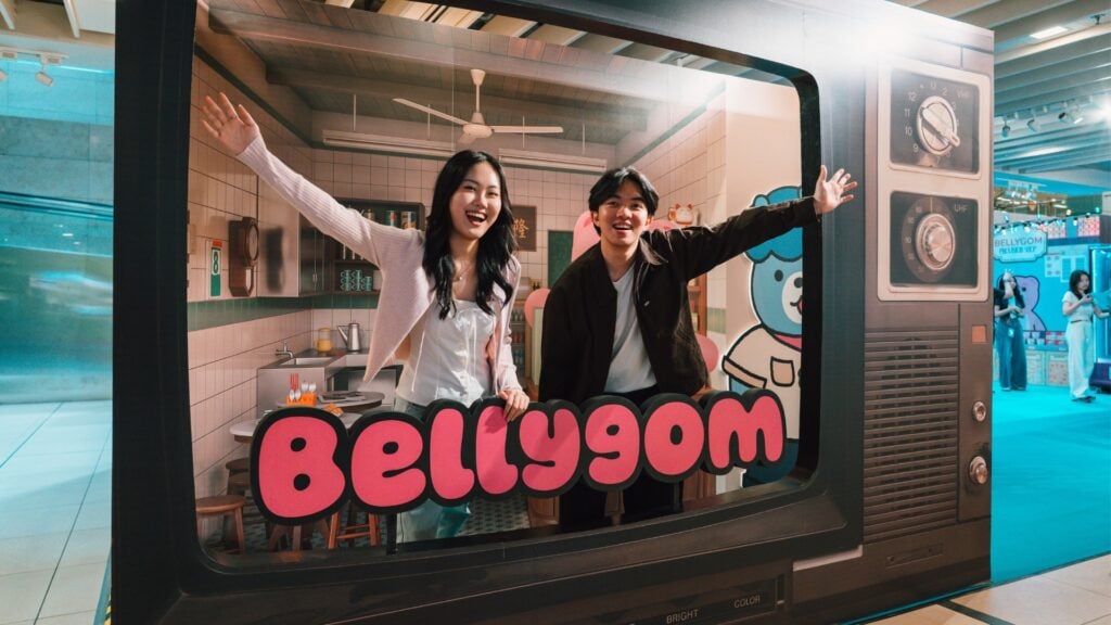 Wander around and you’ll find Bellygom’s friends inviting you in for a picture-perfect moment. Pose with larger-than-life iconic local snacks, including ice gem biscuits with Ja-Ah Dochi the hedgehog and a cup of kopi featuring Daldal-Guri the raccoon. Or capture your moments outside an old-school provision shop and kopitiam, complete with a HDB void deck table.