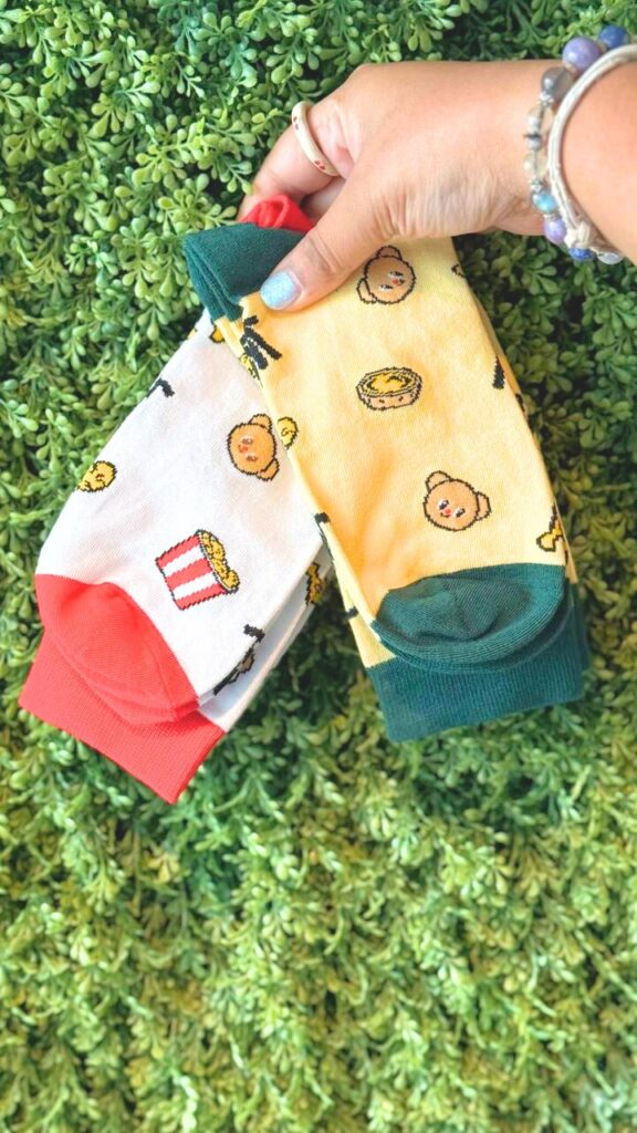 Start with the adorable Butterbear printed socks, available in two playful designs. The red version features Butterbear alongside KFC’s signature fried chicken bucket in 8-bit art form. Heads up that this is only available for food delivery orders via the KFC Singapore’s mobile app.
