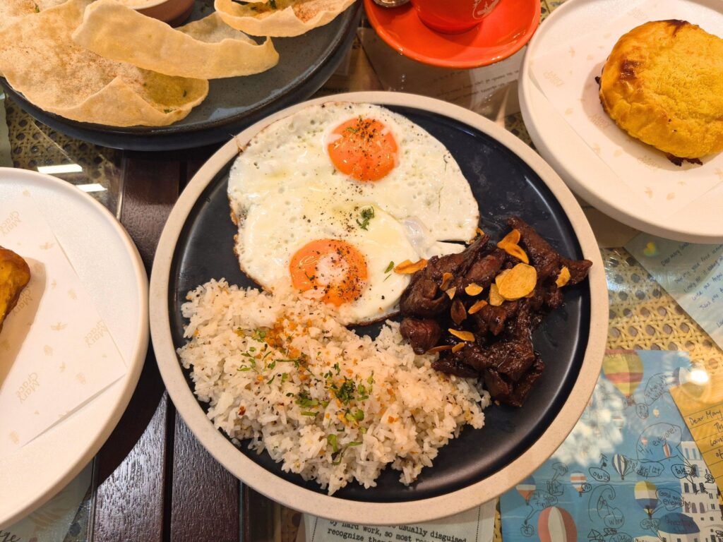 Each dish blew us away—the cassava chips were light and crisp, without any hint of grease that usually leaves you feeling sluggish and the Beef Tapa with garlic rice and sunny-side-up made for a perfect savoury combination. We recommend dipping the glazed beef slices into some runny yolk for the ultimate bite.