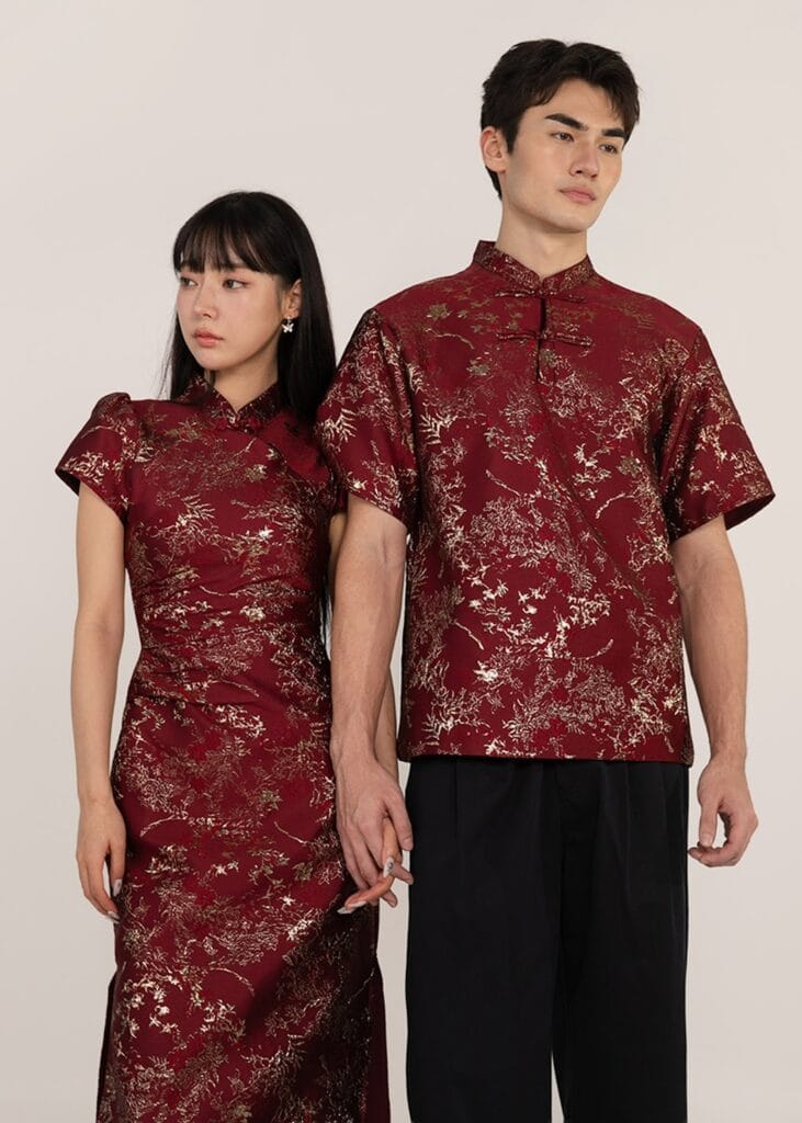 Among the collection, the spotlight falls on their couple sets. Ladies can choose between the label’s qipao tops or dresses, while partners can complement the set with matching patterned button-down shirts.