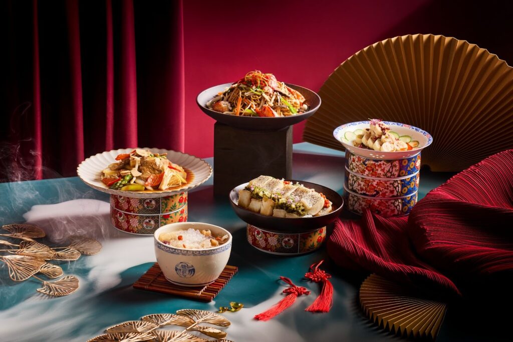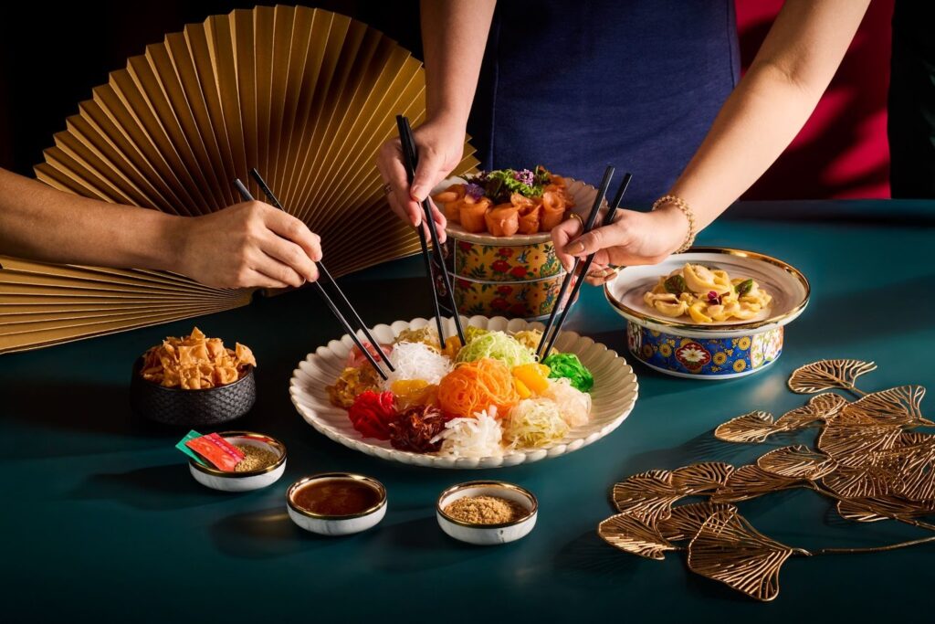 Hosts can further elevate your Lunar New Year celebration with the Prosperous Lo Hei Yu Sheng and Xinjiang-Style Fish Skin, with topping options such as vegetarian abalone, baby abalone, and smoked salmon. Towards the end of the meal, wind down from the feast with seasonal refreshments like Blessed Pineapple Cordial and Mandarin Orange Punch with Aiyu & Lychee Boba.