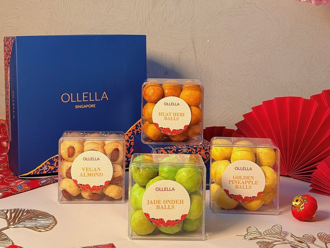 A halal-certified business selling intricately made Kueh Lapis, Ollella infuses its Indonesian culture into its line-up of Chinese New Year snacks. Packaged in an elegant Batik-inspired box, Ollella’s Jade Ondeh Balls, Huat Hebi Hiam Balls, Golden Pineapple Balls, and Vegan Almond Cookies are creatively curated for festive gifting.