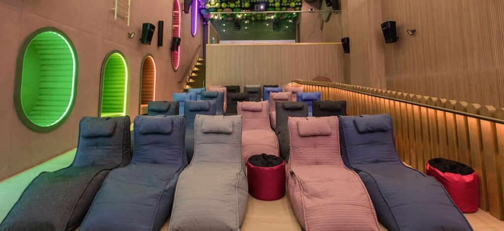 The hall features two tiers of comfy beanbag seating, giving families the freedom to choose their favourite spot, whether it be closer to the screen on the main floor, or further on the upper deck. Seating in Dreamers is also unassigned, so your energetic ones can settle wherever is most comfortable for them, alongside a good view for the family.