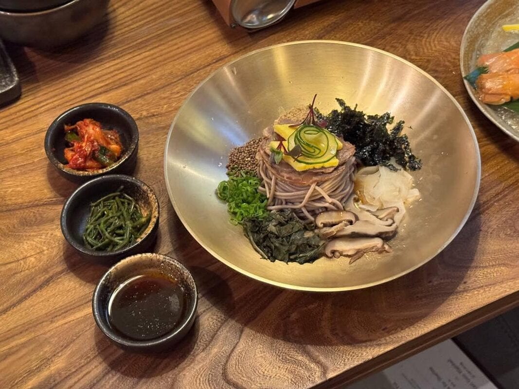 Upon placing your order, a wide array of side dishes will be served, comprising bites of traditional kimchi and pickled radish, alongside more unique dishes like tofu watersnail and pickled wild garlic leaves. The best part of these sides—it’s all refillable!