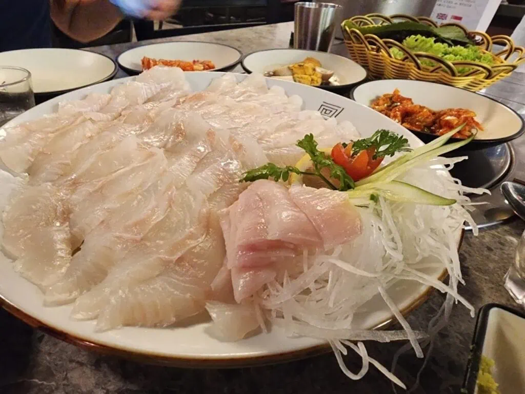 Similar to seafood markets in Korea, your food will be caught fresh from the tanks, and sliced into sashimi before being served. In addition, their live seafood is air-flown weekly from Korea, bringing the closest taste of Korea to you. Compared to Japanese sashimi, hoe is a little chewier, and typically eaten with ssam and dipping sauces like gochujang and ssamjang.