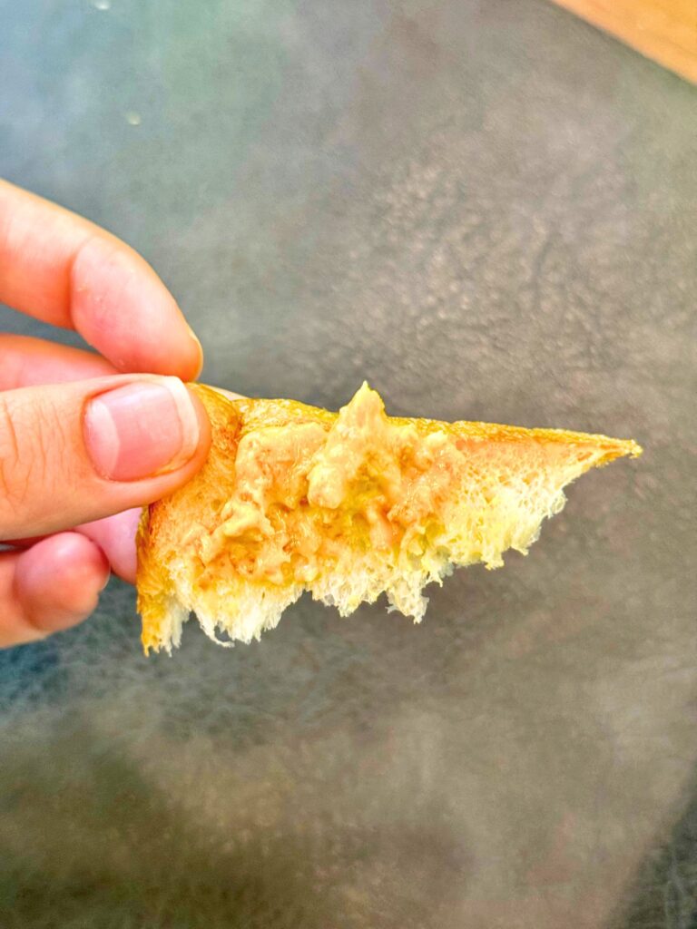 The toasts are generously topped with mozzarella and cheddar respectively. You can choose to have either cheese on either slice of toast. I really enjoyed how the mozzarella brought out the Hokkaido Milk Bread’s fragrance.