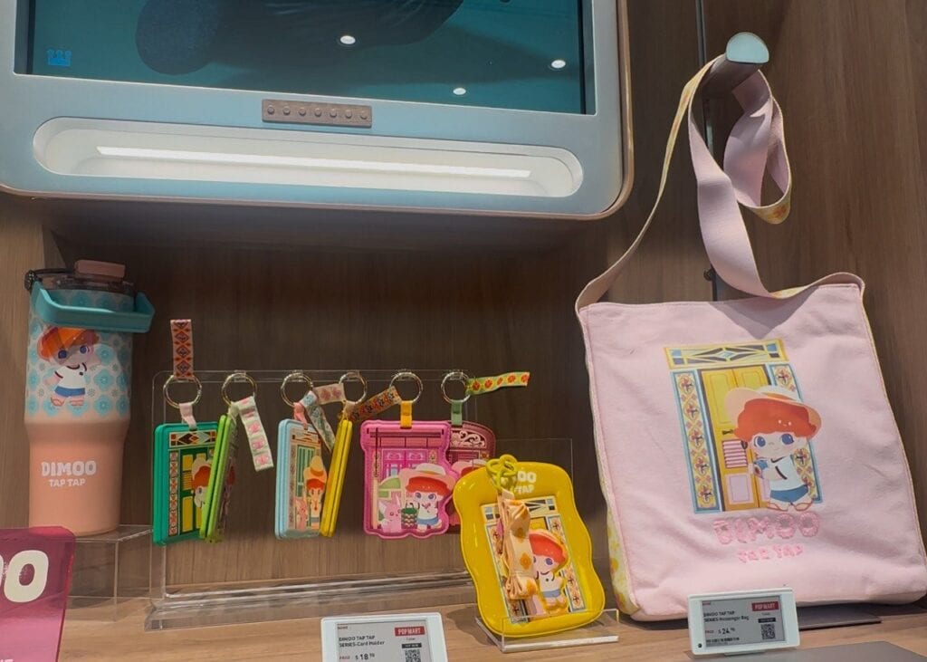 Apart from Labubu, the endearing Dimoo makes his rounds around Singapore’s shophouses and colourful buildings. Aligned with the concept of venturing, Pop Mart presents the Dimoo tap-tap series (like tapping bus cards to travel across Singapore). Compared to Labubu’s variety of products, Dimoo’s roster is suited for those who travel often, featuring mini compact mirrors, lanyards, and a sling bag.