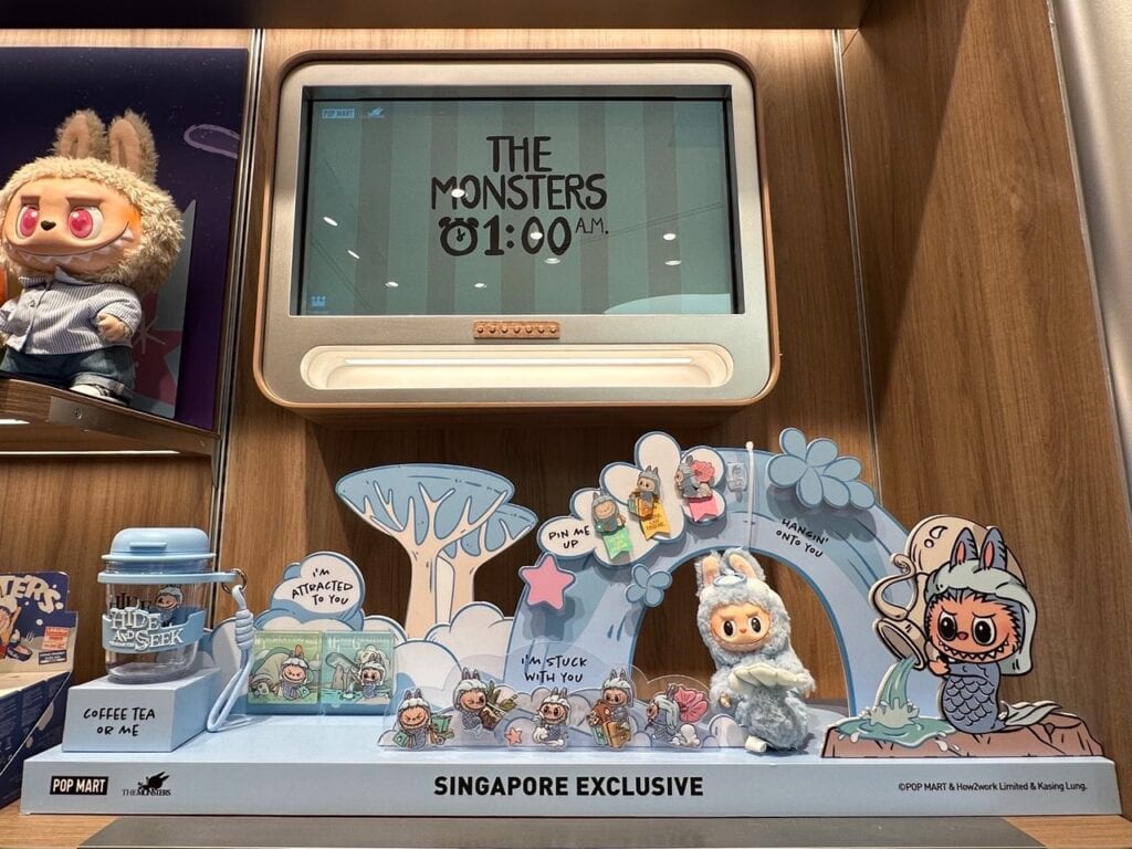 The Christmas series isn’t the only new collection in store, because this outlet now holds Singapore-exclusive merchandise. Following the theme of Labubu Hide-and-Seek in Singapore, you can skim through merchandise featuring this little monster exploring the island. Merchandise includes fridge magnets, a reusable cup, tote bags, and the highlight—the Merlion Labubu Plush Keychain. These Singapore-exclusive Labubu products range from S$15.90 to S$37.90.