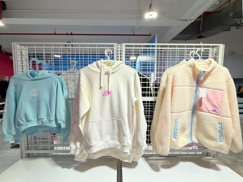 As for the HUNTR/X, browse through hoodies (S$81) and sweaters (S$72) inspired by their hit soundtrack, “Golden”, and pastel button pins (S$4 each) showcasing chibi versions of the trio.