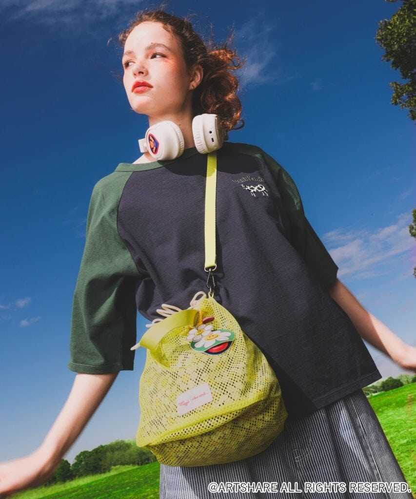 Sized to neatly hold numerous items like a 600ml bottle, long wallet, pouch, smartphone, and other belongings—you won’t need to rely on any pockets with this adorable bag. As an outer mesh wraps the drawstring bag printed with Wiggle Wiggle’s motif, this mesh can also be easily removed with its side buttons for you to decide what you want to show.