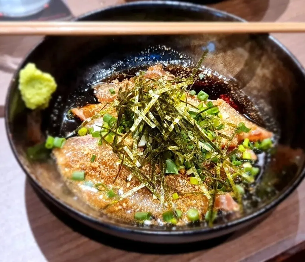 Out of the hearty menu items offered, they also serve unique dishes like Octopus Vinegar Miso, which gives you a good balance between the salty sea and sweet condiments.