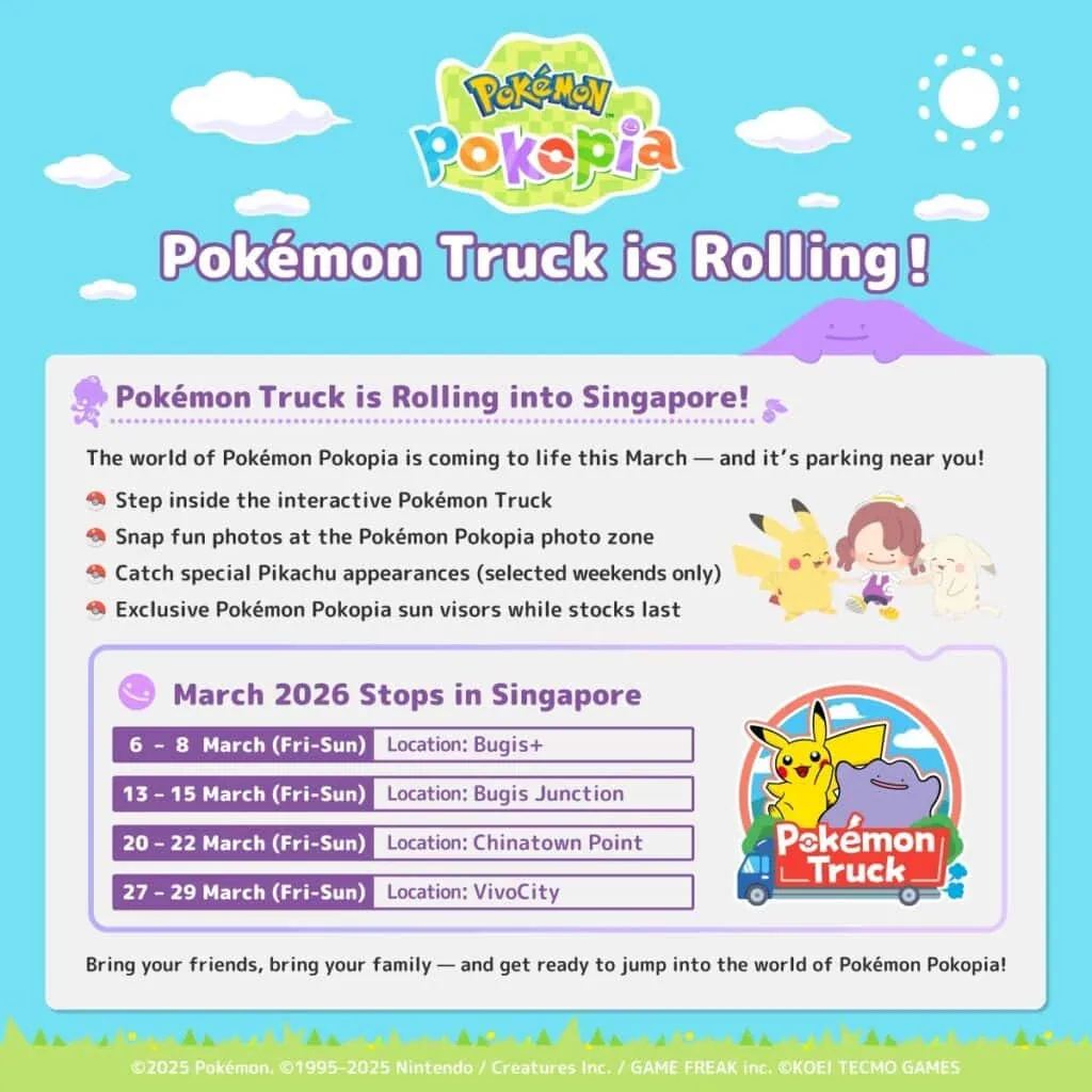 The Pokémon Truck will be on the move till 4 June 2026, with fixed locations currently confirmed till March 2026. Catch the truck at these locations:
