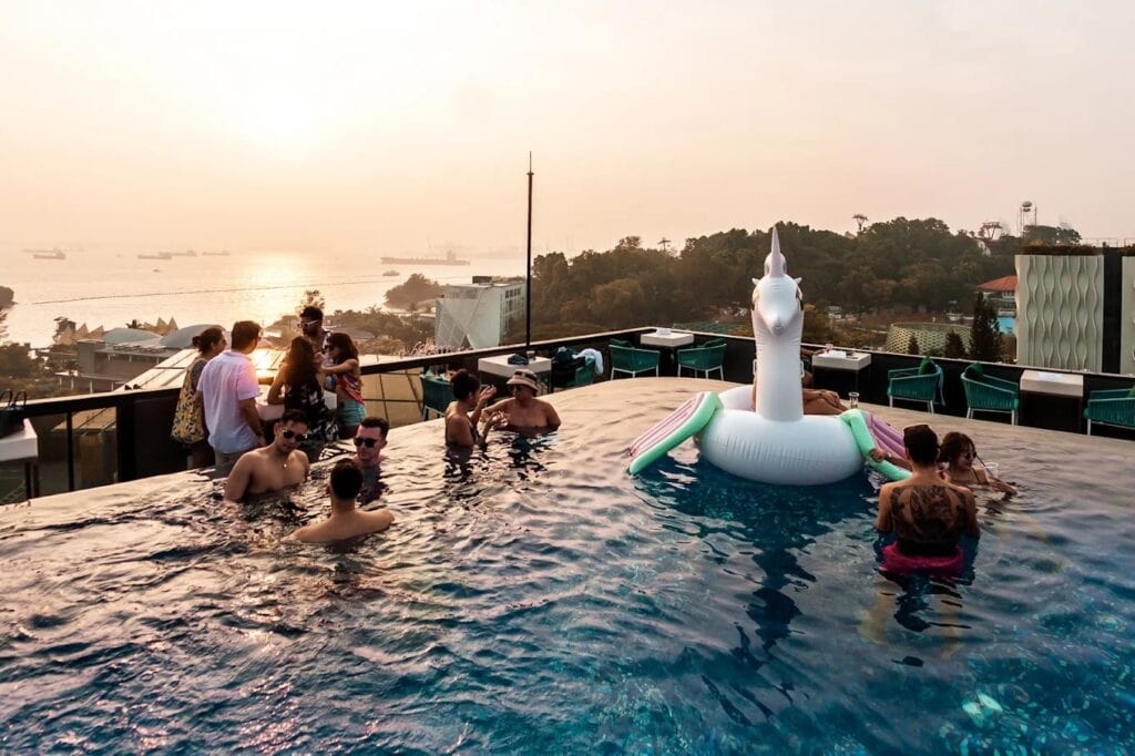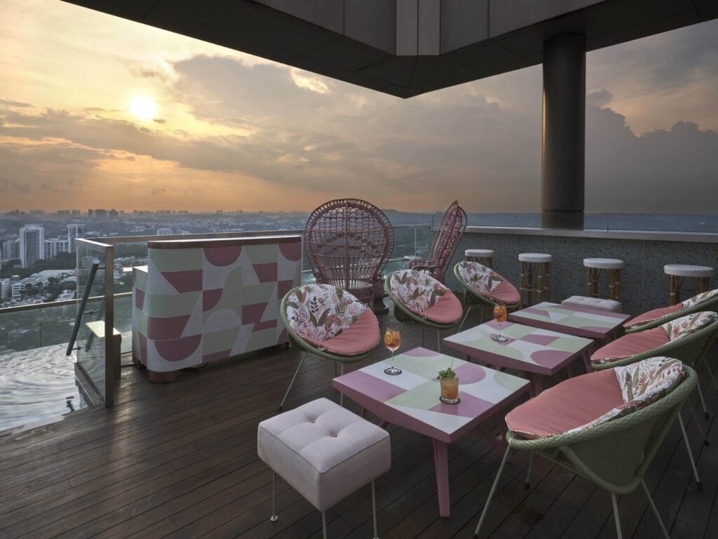 Looking for something more European? Check out Verandah at Momentus Hotel Alexandra, as it’s set on the 7th floor. It features a restaurant, a bar, and an infinity pool for guests to dip their feet in.