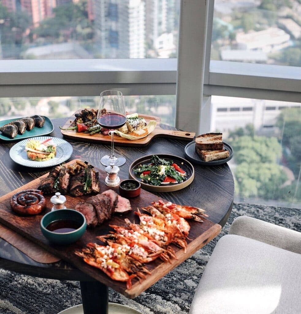 In case you haven’t had enough of MONTI and 1-Alfaro, you can indulge in Italian cuisine at LAVO Singapore. Location-wise, it sits on the 57th floor of the iconic Marina Bay Sands Hotel.