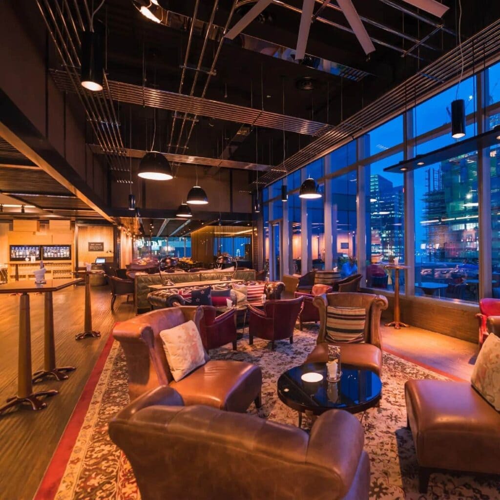Want to impress your date? Bring them to Cooling Tower Rooftop Bar, perched on Level 29 of Carlton City Hotel Singapore. The rooftop bar boasts stunning views of the harbour coastline, while its lush interiors create an intimate and inviting atmosphere.