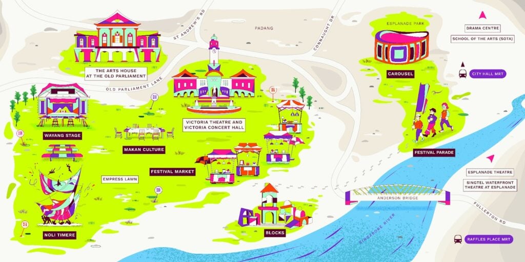 Highlighted works include: Just Keep Swimming, Just Keep Swimming《记忆游泳池》by The Theatre Practice—a work which transforms the Festival Village into a communal music and movement space; RUPTURE by The Observatory—a dawn sound installation drawing on seismic research, volcanic activity and mythology, and Makan Culture at the Festival Market—an interactive celebration of Singapore’s beloved dishes through puppetry, music and theatre.