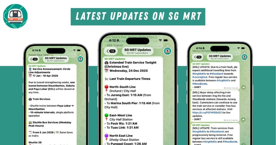 The Telegram channel shares timely information on train service disruptions, new bus interchanges, bus express services, and more—helping you stay informed and act quickly during unexpected delays.