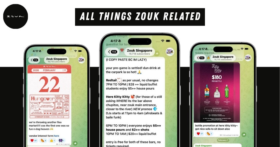 Zouk Singapore Channel stands out, with its resident Gen Z intern running the feed in a laid-back, satirical tone. While the humour is tongue-in-cheek, the deals are very real; just make sure you meet the terms and conditions.