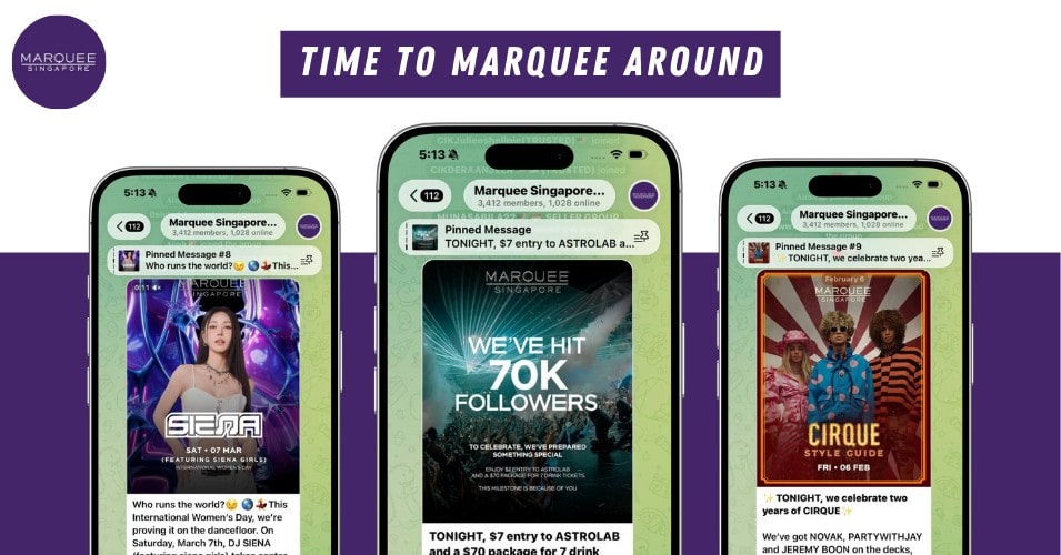 Beyond the Zouk Singapore Channel, Marquee Singapore also runs its own Telegram channel. With every subscriber milestone reached, the channel unlocks exclusive deals, with their most recent deal being S$7 entry or S$70 packages for seven drink tickets.