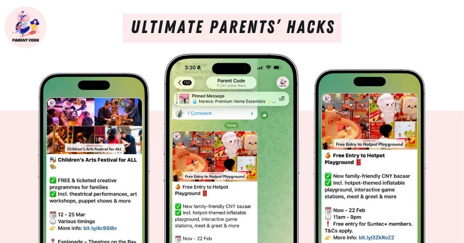 You don’t have to be a parent or paw-rent to join Parent Code, a Singapore Telegram channel dedicated to sharing useful content for the family. More than just enriching and educational tips for parents, Parent Code curates a wide range of activities, events, and experiences that are fun for the whole family.
