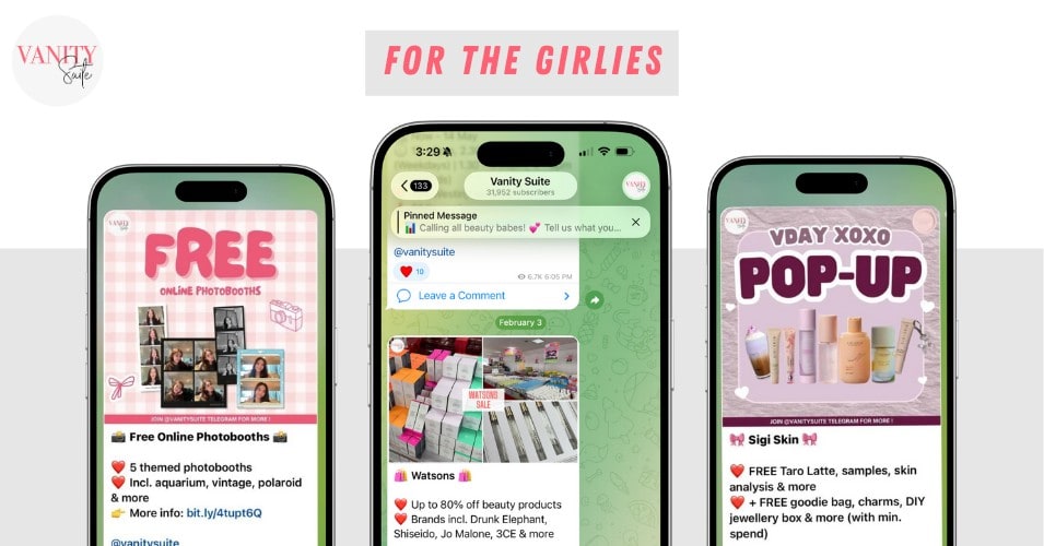 Vanity Suite is a one-stop Singapore Telegram channel for all your beauty, fashion and wellness needs. Want to know what the latest beauty products you simply need to get your hands on are? Or the most relaxing and value-for-money spa in Singapore? How about gorgeous afternoon tea spots or the latest aesthetic cafes to visit with friends?