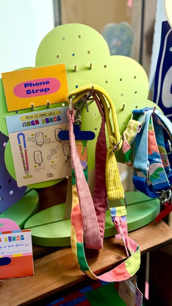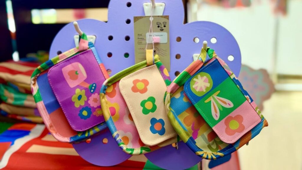 The store has redesigned and expanded its pop-up beyond the display glass, lining up racks of tote bags, phone straps, and décor, making it impossible to miss. Upon closer inspection, you will notice that these items share the same look and feel, consisting of vibrant colours, light recyclable materials, and practical items for daily use.