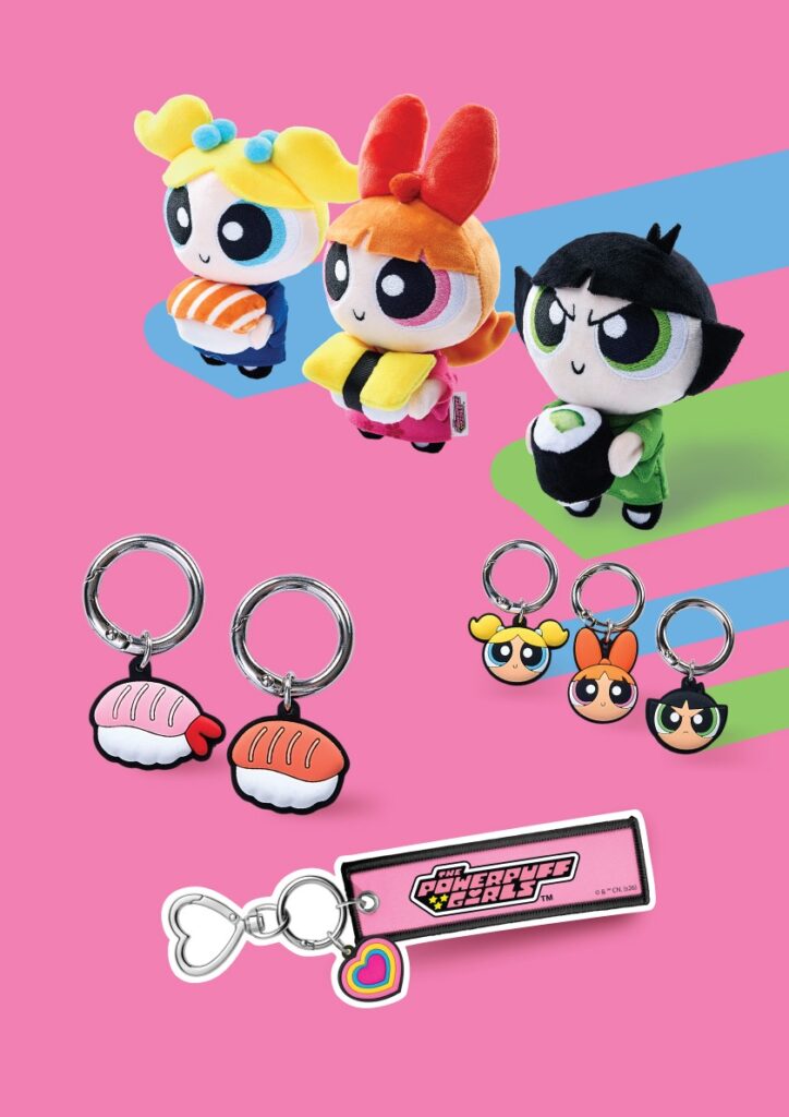 If you want something to cuddle, you can get the Keychain Plushes (Redeemable through the stamp card system) of the Powerpuff trio, each hugging a sushi. The fun, light-hearted designs are suitable for adults and children alike.