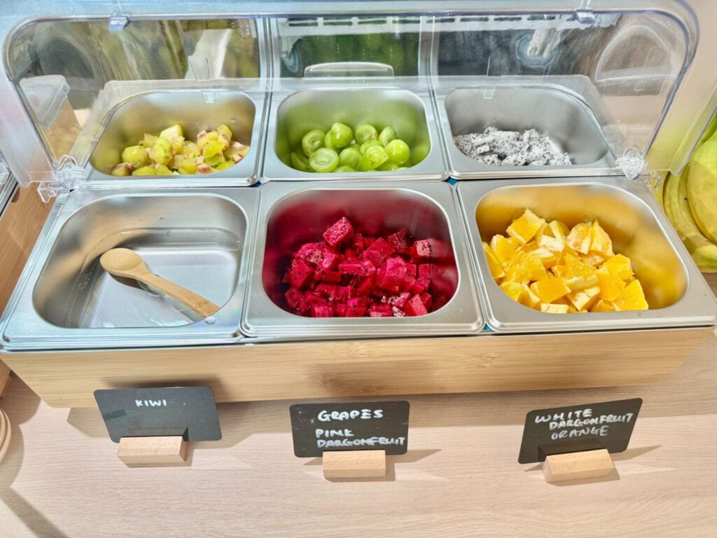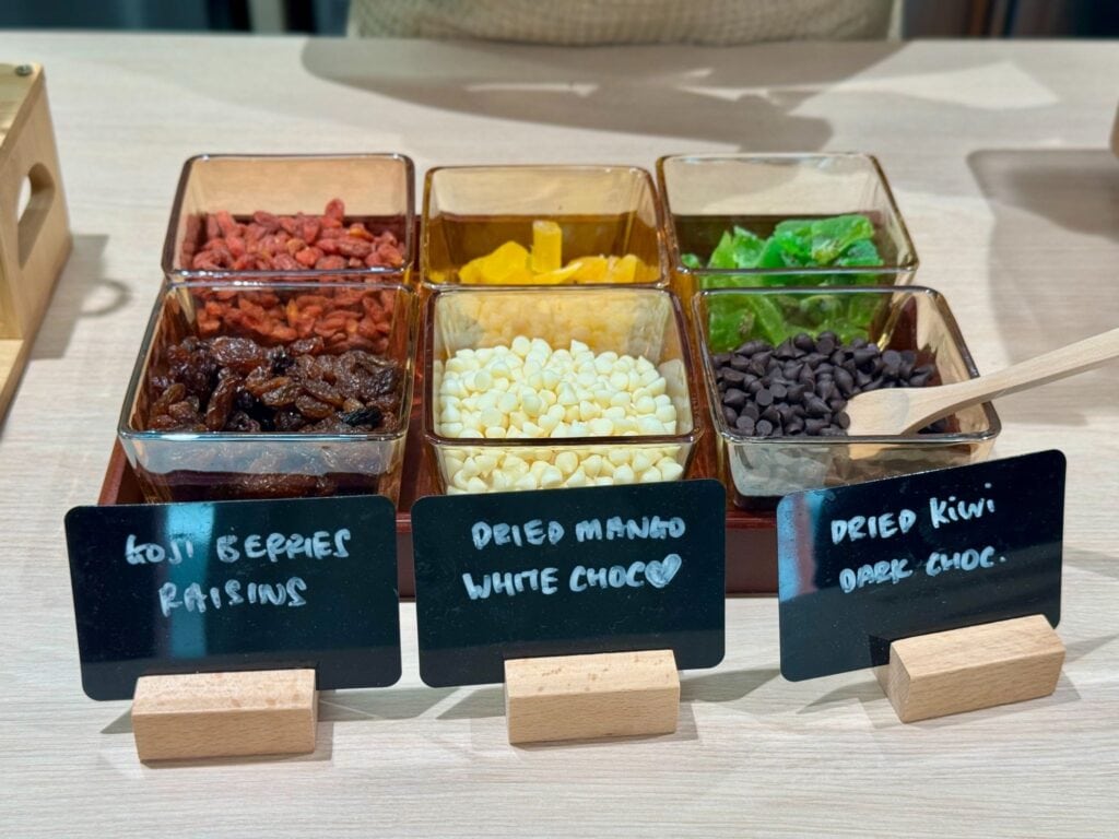 You’ll receive your soft-serve after you make your payment. Then, proceed to the island of toppings where you’ll be greeted with assorted fruits like oranges, white and pink dragonfruits, grapes, kiwi, and more. If fruits ain’t your thing, get the strawberry jellies, brown sugar boba, lychee boba, or nata de coco.