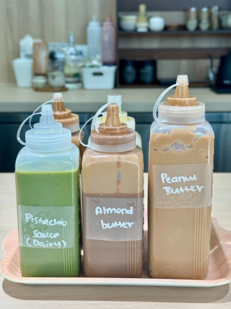 Top all of these with any of the six sauces — Pistachio, Almond Butter, Peanut Butter, Biscoff, Passionfruit, and Matcha.