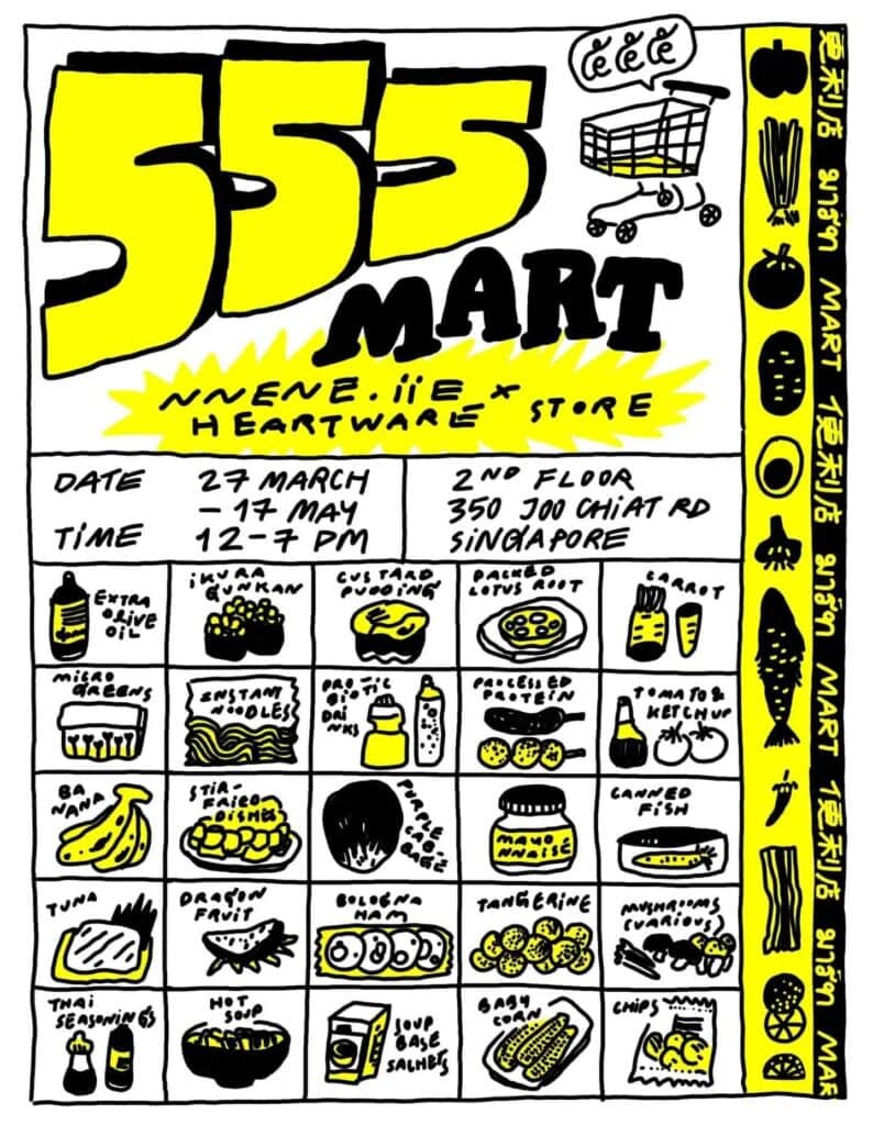 Named after the Thai shorthand for laughter, the 555 MART is stocked with her illustrated market finds, including snacks and small essentials she has picked up on her travels.