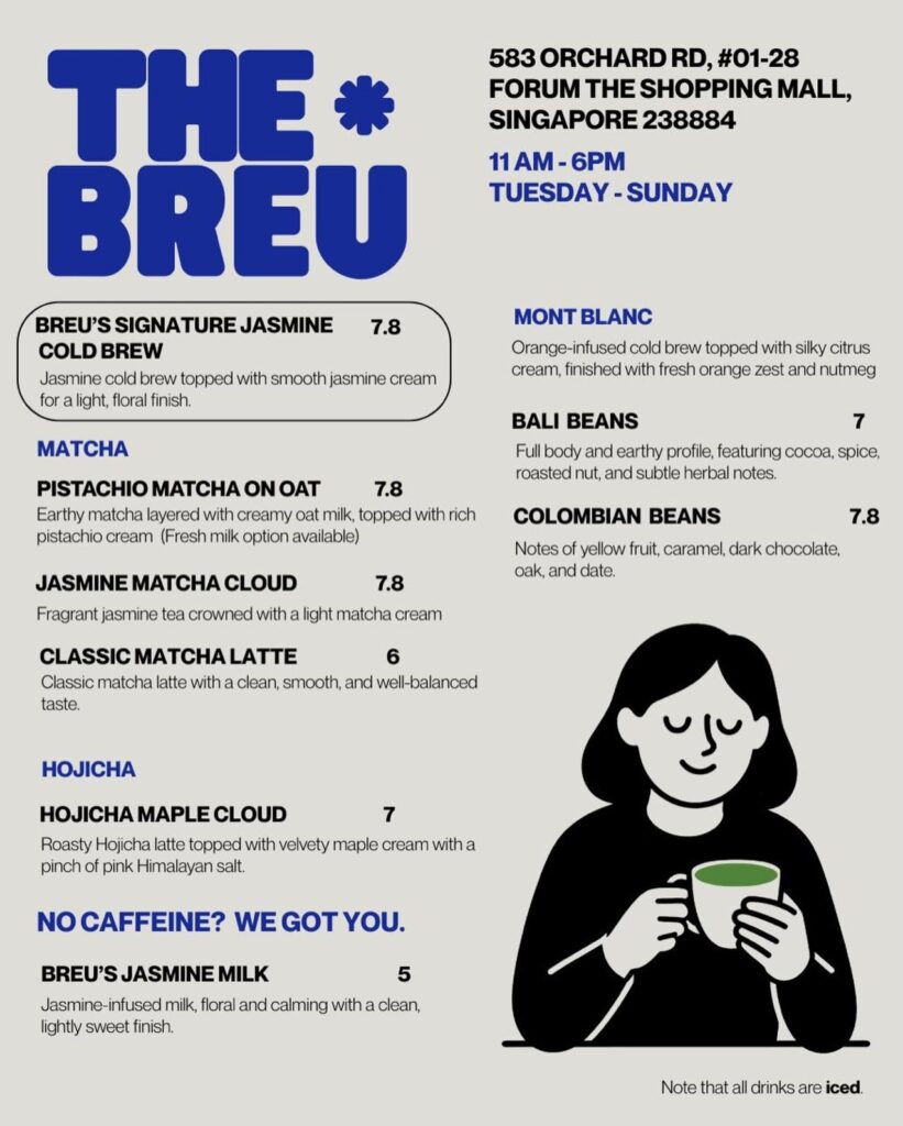 A pop-up café which first appeared in Orchard Road, The Breu prides itself on their in-house aromatic tea foams and fruity tea blends.