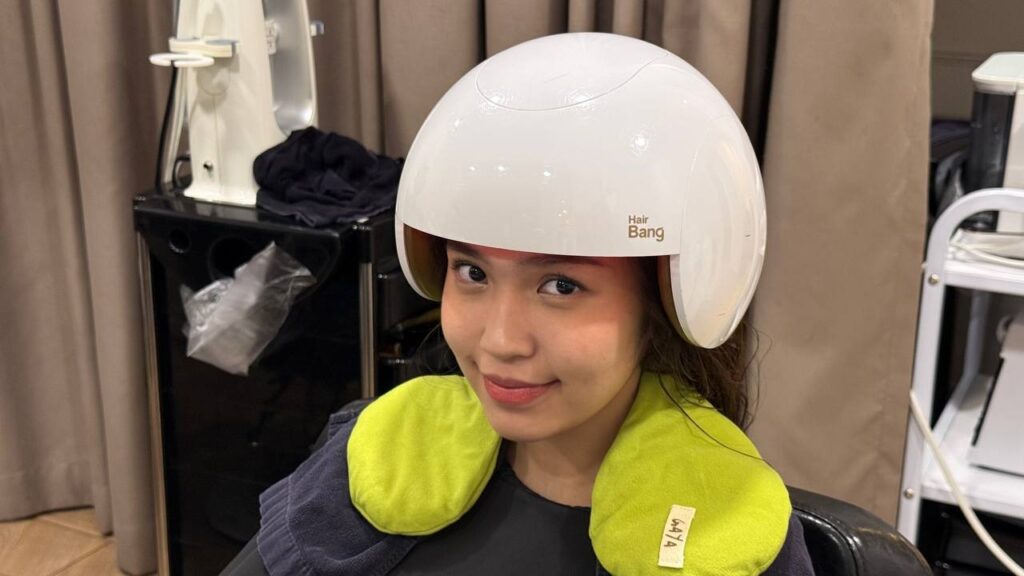 The Hair Bang device was then placed on Yan’s head to deliver low-light therapy. Through the light therapy, the Hair Bang helped maintain Yan’s scalp pH balance, detoxifies, and heal her scalp from any inflammation.