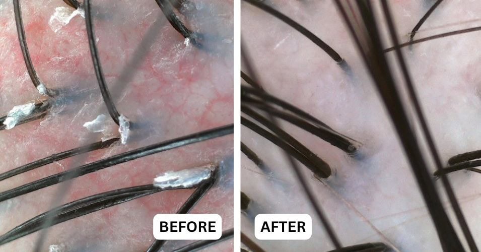 To wrap up the treatment, Yan had a second scalp scan done post-treatment and was delighted to see the visible improvements after just one session, magnified and displayed on the screen. Her scalp looked significantly clearer, with flakes and excess oil around the hair follicles gone. The redness and inflammation had visibly reduced, and her scalp felt deeply nourished and refreshed. Most noticeably, the tight, itchy and irritated sensation she had struggled with for so long had completely subsided. Seeing and feeling such a dramatic improvement motivated her to take better care of her scalp. Yan is now convinced and fully committed to healthier sleep, improved dietary habits, and a regular scalp care routine with TrichoKare to maintain the results.