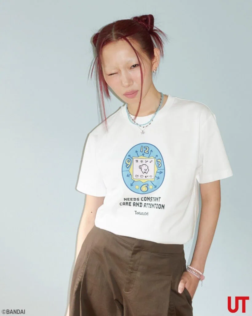 As the collection revolves around the simple yet expressive virtual pet, anticipate charming T-shirt designs and a UT Original Tamagotchi. The UT Original Tamagotchi, in particular, was inspired by the first generation of Tamagotchi. The T-shirt designs, on the other hand, were created based on the pixel art from the original Tamagotchi.