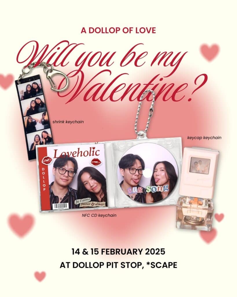Cut out your photos into a keychain at Solace Studios, or create a NFC CD keychain at Dollop Photobooth to listen to your favourite couple song wherever you go. Although these are activities listed off the top of our heads, you can expect even more photobooth experiences to pop up along the week of Valentine’s Day.