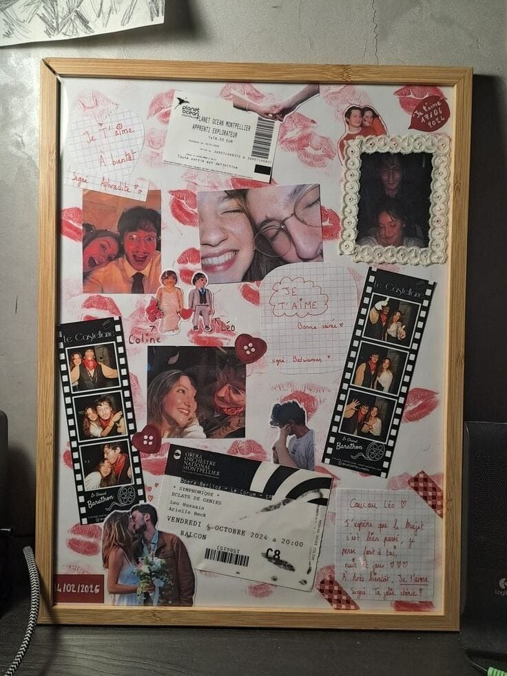 No matter what your partner’s love language might be, a couple’s collage board comprising photos, messages, and appreciation can never go wrong.