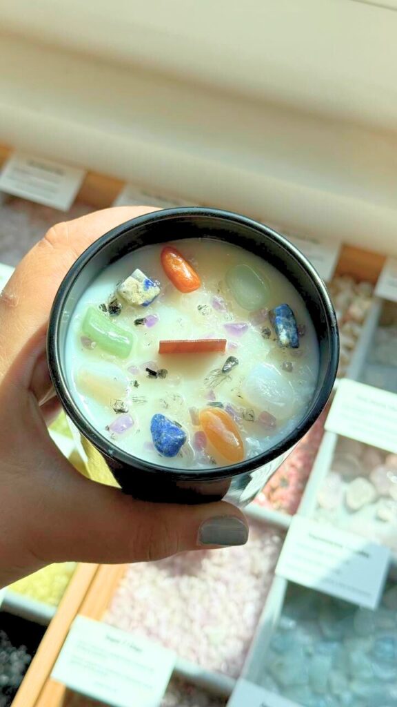 For what felt like hours, we meticulously selected the various crystals, dried flowers, and little decorations we wanted to add to our candles. Every choice felt personal, as if we were crafting tiny pieces of magic just for ourselves.