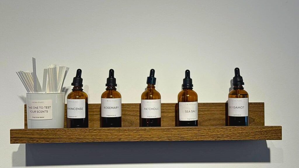Once we’d settled in, it was time to pick two of our preferred scents. The options were endless, from fresh Sea Salt to herbal Rosemary, zesty Bergamot, and many more. After constant back and forth across the myriad of scents, I finally settled on Sea Salt and Rose.